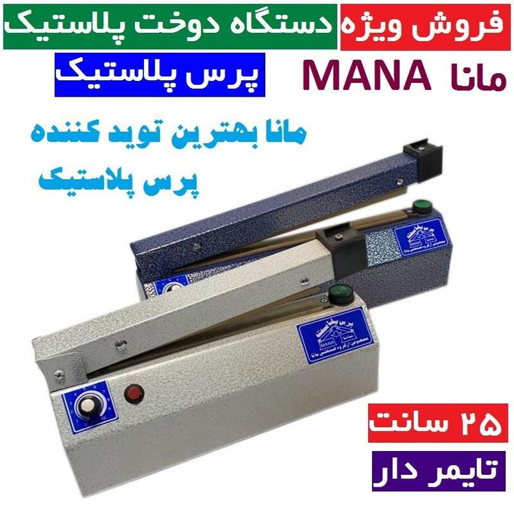 دستگاه پرس پلاستیک مانا 25 سانتی تایمر دار دوخت پلاستیک پرس نایلون