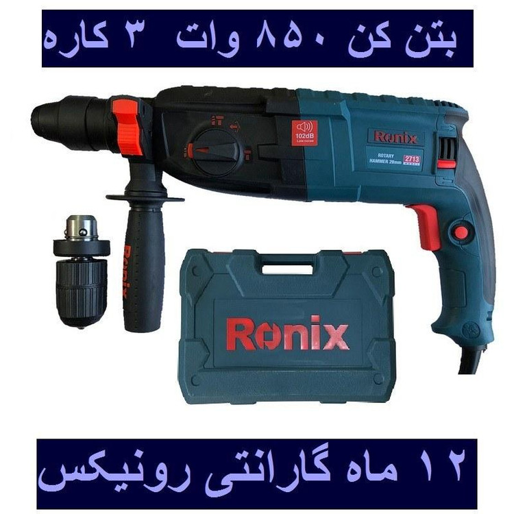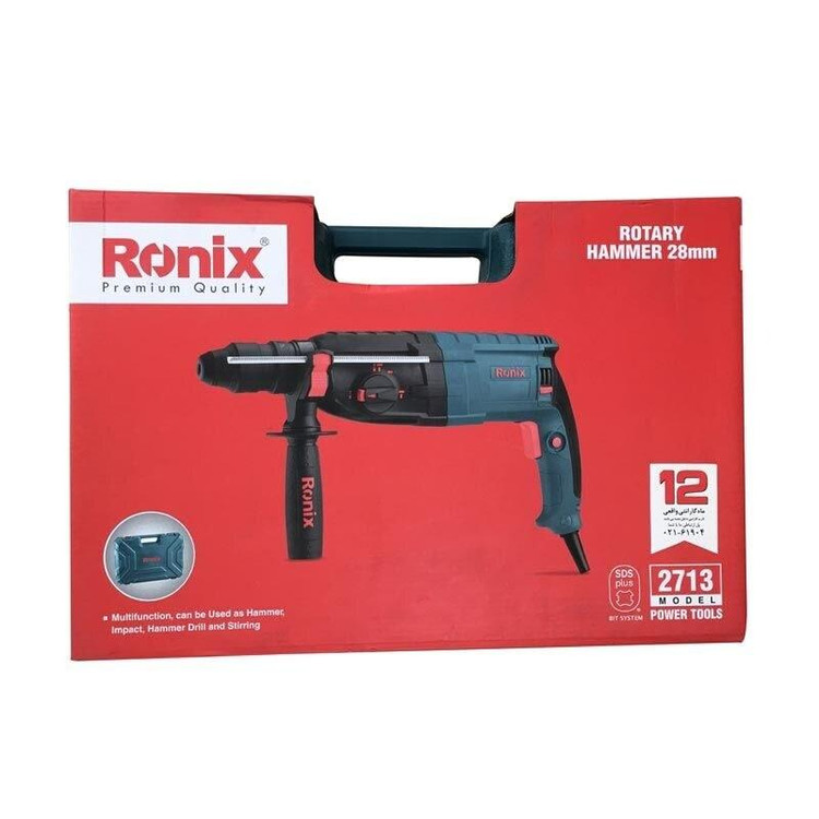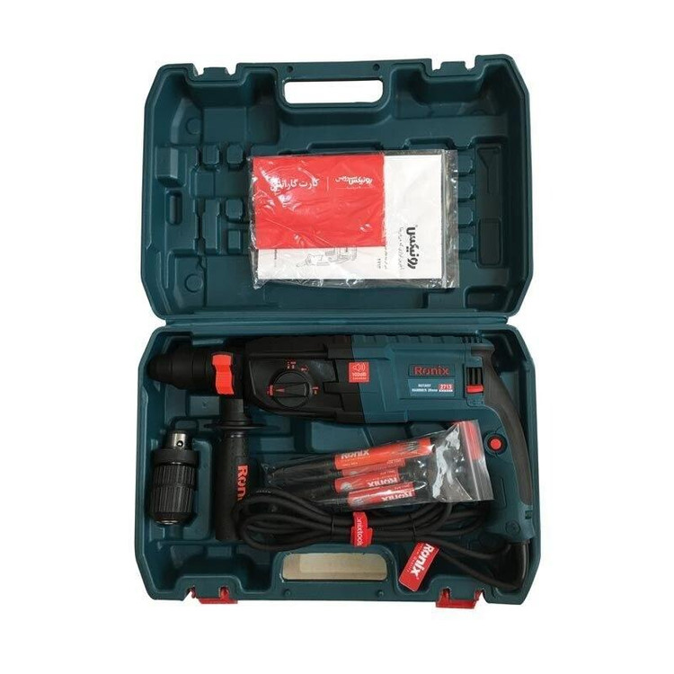 ویژگیها: -مجهز به موتور پرقدرت با قابلیت تنظیم برای اجرای سه عملکرد مجزا (سوراخکاری، سوراخکاری چکشی و تخریب) - طراحی منحصربفرد بدنه مطابق با استاندارد روز و از مواد مقاوم و باکیفیت جهت ضمانت عمر طولانی دستگاه و محافظت هرچه بیشتر در مقابل صدمات فیزیکی -مجهز به سیلندری با ظرفیت بالا برای ایجاد قویترین ضربهها با توان 3.5 ژول جهت اثربخشی بیشتر دستگاه -دارای دسته گردان 360 درجه برای اعمال کنترل بیشتر روی حرکت دستگاه و استفاده آسان برای کاربر - مجهز به سیستم ابزارگیر چهارشیار SDS-PLUS ضدغبار با قابلیت تعویض آسان مته -دارای کلید قفلکن سرعت در حالت روشن برای تنظیم دقیق سرعت و آسایش کاربر در زمان استفادههای طولانی مدت - طراحی منحصربفرد در قسمت محافظ کابل به شکل کروی -مجهز به سیستم پیشرفته کلاچ ایمنی جهت محافظت بیشتر از دست کاربر در هنگام استفاده روی سطوح بسیار متراکم -مجهز به گیربکس صنعتی با وزن متناسب ساخته شده از آلمینیوم جهت بالا بردن اثربخشی عملکرد -قابلیت نصب سریع و آسان ابزار گیر 4 شیار و همچنین سه نظام 13 میلیمتری اتوماتیک برای استفاده از رنج وسیعی از کاربری ها مشخصات کد محصول 2713 توان600وات 850وات ولتاژ 220-240ولت فرکانس50-60هرتز 50-60هرتز سرعت در حالت آزاد 0-1280دور بر دقیقه نوع سهنظام (SDS-PLUS) چهارشیار ظرفیت سهنظام 28میلیمتر توان ضربه 3.5ژول حداکثر تعداد ضربه در حالت آزاد 0-5500ضربه بر دقیقه ظرفیت سوراخکاری در چوب 40میلیمتر ظرفیت سوراخکاری در فلز 13میلیمتر ظرفیت سوراخکاری در بتن 28میلیمتر وزن 5.35کیلوگرم نوع بستهبندی کیف BMC ضد ضربه متعلقات ذغال ،عمق سنج ،سه نظام اتوماتیک 13 میلیمتری ،4 عدد مته SDS Plus