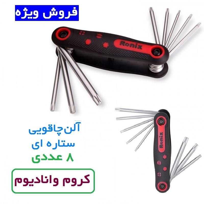 مجموعه 8 عددی آلن ستاره ای چاقویی رونیکس با کد آیتم RH-2021 الن چاقویی ستاره ای رونیکس کروم وانادیوم کیفیت عالی