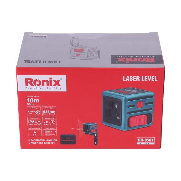 ویژگیها: -قابلیت استفاده در فضای داخلی و بیرنی(با استفاده از دیتکتور) -دارای خطوط عمودی و افقی قرمز رنگ ‐ نمایش خطوط عمودی و افقی به صورت همزمان - مجهز به قابلیت خودترازی اتوماتیک ± 3° با دقت و سرعت عمل بالا حین کارکرد - دارای قابلیت قفل پاندول جهت محافظت از سیستم لیزر دستگاه حین حرکت یا جابهجایی - دارای بدنهای بسیار مستحکم و پوشیده شده از رابر مقاوم در برابر ضربه - ضد گردوغبار و مقاوم در برابر رطوبت و سقوط از دست کاربر با استاندارد بینالمللی IP54 که از دستگاه در برابر سقوط از دست کاربر محافظت میکند و امکان کار در شرایط سخت مانند کار در محیطهای بارانی یا پر از گرد و غبار را فراهم مینماید -وجود رزوه 1/4 اینچی امکان قرار دادن روی سه پایه یا تثبیت چند منظوره را فراهم می کند. مشخصات کد محصول RH-9501 دقت خط لیزر ±2 میلیمتر در 5 متر دامنه خودترازی دستگاه ±3° برد دستگاه/ با رِسیور 10 متر/ 50 متر با رِسیور سایز رزوه سه پایه 1/4 اینچ نوع لیزر 635 نانومتر / لیزر کلاس 2 درجه محافظت IP54 محدوده دمای کارکرد 10- الی 50 درجه سانتیگراد ابعاد 65*65*65 میلیمترمکعب حداکثر زمان کار مداوم حداکثر تا 8 ساعت نوع باتری باتری AAA آلکالاین 7.4ولت وزن 230گرم نوع بستهبندی کیف برزنتی متعلقات 3عدد باتری،پایه