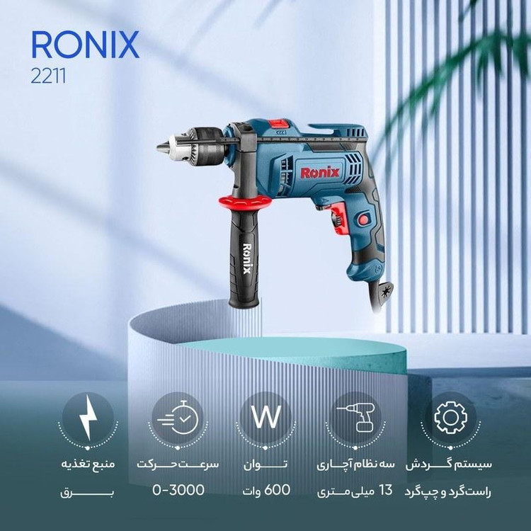 دریل برقی چکشی 13 آچاری 600 وات 3000 دور رونیکس مدل 2211 با کارت گارانتی