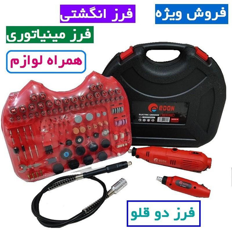 وزن 0.5 کیلوگرم توان 130 وات سرعت حرکت آزاد 35000 ویژگیهای صفحه صفحه برش مناسب برای آهن مناسب برای سنگ اندازه سوراخ اتصال 3.2 ویژگیهای فرز و سنگ رومیزی قابلیت برش با زاویه قابلیت کنترل سرعت مناسب برای چوب مناسب برای سنگ مناسب برای فلز صفحه ساب صفحه همراه برقی اقلام همراه 130 عدد لوازم حکاکی - رابط خرطومی - آدابتور 12 V سایر توضیحات فرز انگشتی دو دستگاه ادون شامل دوعدد فرز مینیاتوری میباشد که دستگاه کوچک با توان 12V با اتصال به برق و آدابتور کار میکند و سرعت 16000 دور در دقیقه دارد. دستگاه بزرگ دارای توان 130W است که با قابلیت کنترل سرعت گردش 8000-35000 دور در دقیقه را دارا میباشد . این مجموعه شامل تعداد 130 عدد مته - صفحه برش - صفحه ساب - صفحه پولیش - سنباده و ... در سایزها و انواع متفاوت میباشد.