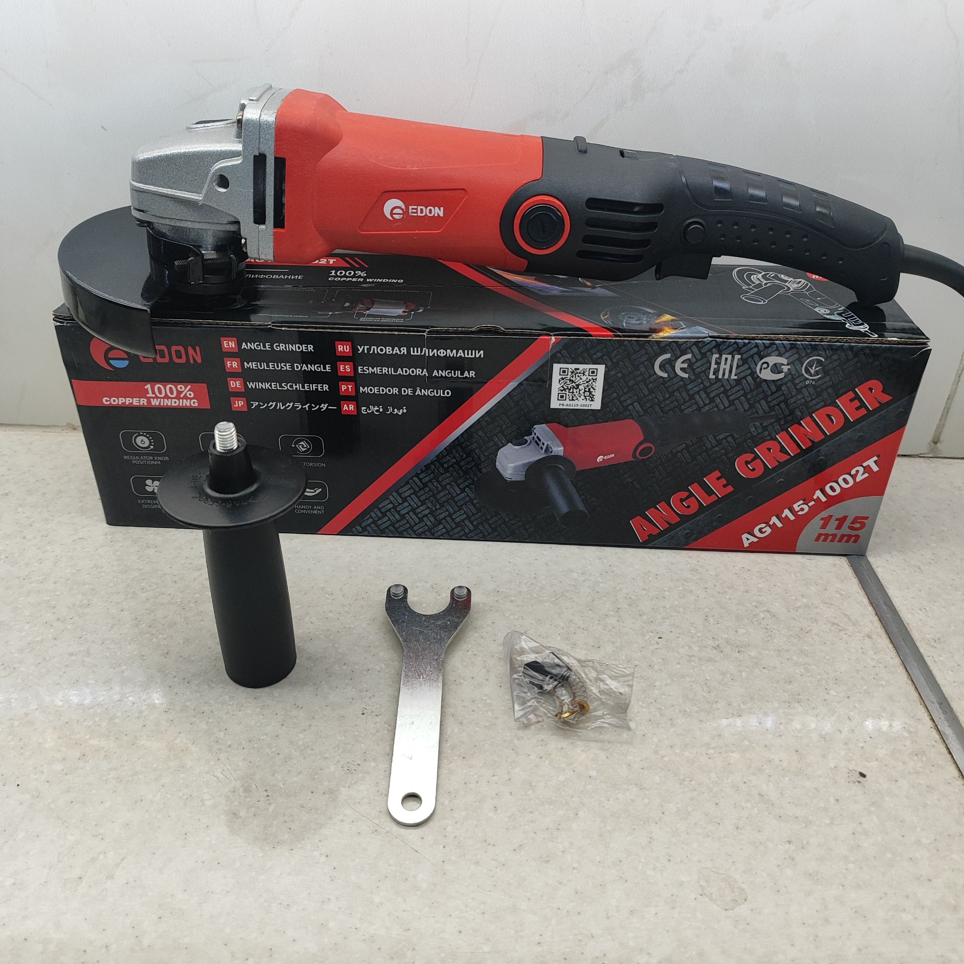 توان: 1100 وات قطر صفحه: 115 میلی متر سرعت گردش : 0 – 11000 دور در دقیقه کنترل سرعت: دارد ( دیمر 6 سرعته) اقلام همراه: گارد محافظ، آچار، دسته کمکی ، دفترچه راهنما وزن 2,5 کیلوگرم مینی فرز دیمردار ادون مدل AG115-1002T برای برش و سابش فلزات مورد استفاده قرار می گیرد ادون در این مدل از موتوری با توان 1100 وات استفاده کرده است، این توان سرعت گردش آزاد مینی فرز را تا 11000 دور بر دقیقه را خواهند رساند.حداکثر قطر سنگ صفحه فرز استفاده شده در این دستگاه 115 میلیمتر است، و شما می توانید از صفحه های با قطر کوچکتر نیز بر روی این دستگاه استفاده نمایید. لازم به ذکر است اندازه سوراخ مرکزی این دستگاه حدود 14 میلی متر می باشد. وزن مینی فرز دیمردار ادون مدل AG115-1002T حدود 2.6 کیلوگرم است که علاوه بر اینکه کاربر را خسته نمی کند دقت در کار برشکاری سابش بالاتر خواهد رفت. ادون برای کنترل بیشتر روی مینی فرز همراه با دستگاه دسته کمکی تعبیه کرده است که در هر دو سمت فرز قابل نصب است و باعث کنترل بیشتر شما برروی دستگاه خواهد شد . از دیگر ویژگی های مینی فرز دیمردار ادون مدل AG115-1002T می توان به قفل اسپیندال جهت تعویض آسان صفحه و موتور عایق گرد و خاک و سیستم خنک کنده آن اشاره کرد، تا در هر مکانی بدون نگرانی از دستگاه استفاده نمایید.