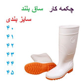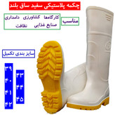جنس: رویه پلاستیک، زیره PVC رنگ: سفید سایز بندی:40-45 استاندارد: کشور اصلی مبدا: ایران کاربرد: حفاظ پا و ساق پا صنایع مرتبط: کار در مخازن، لای روبی لجن ها، کشاورزی، باغبانی و.... توضیحات: برای کار در پروسه های شغلی مرطوب و یا گل آلود و یا در جاهای که امکان تماس با مواد شیمیایی وجود داشته باشد. مقاوم در برابر اسید محیط قلیایی، الکتریسته، بنزین و روغن لغزش می باشد. چکمه لاستیکی ساق بلند سفید جهت حفاظت از پا در محیط های آبی می باشد. موارد مصرف چکمه در بیمارستان ها ،کارخانه،کارواش،قالیشویی،صنایع غذایی،کشاورزی،دامپروری،شهرداری و … می باشد. به منظور محافظت از پا در مکان هایی مانند محیط های شیمیایی و یا در کار کشاورزی و دامداری ها و.. استفاده می شود. گاهی نیز به منظور سهولت در راه رفتن و کار کردن مانند کارهای معدنی استفاده می شود و به خاطر لژ های چکمه پلاستیکی این امور برای مصرف کنندگان راحت تر می شود. همچنین اگر پا در محافظت و راحتی نباشد اجزای دیگر بدن مانند کمر و ستون فقرات را تحت تأثیر قرار می دهد. بنابر این اگر کیفیت مواد اولیه چکمه پلاستیکی خوب نباشد دیگر ایمنی ای برای پا و بدن وجود ندارد