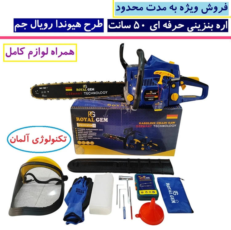 اره موتوری بنزینی رایکا طرح هیوندا رایکا 50 سانت مدل Rk-58 تیغه 50 سانتی 58 سی سی کیفیت تضمینی (فروش ویژه) همراه لوازم کامل۸٬۹۰۰٬۰۰۰ 23%